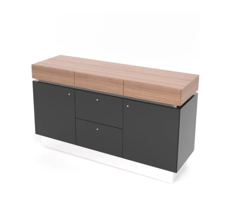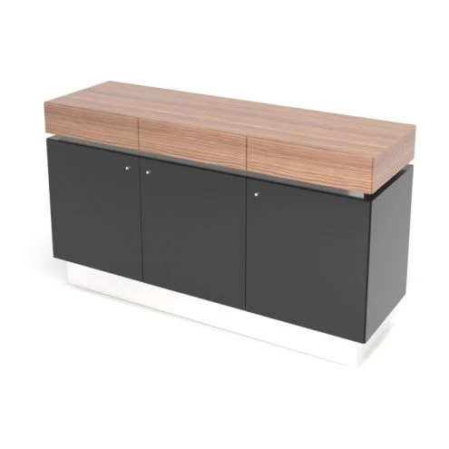 Греденция для фригобара new 165х51х95 (3 ящика) Trevizo Орех каналетто/Черный глянец