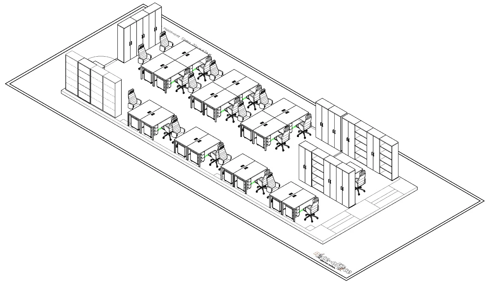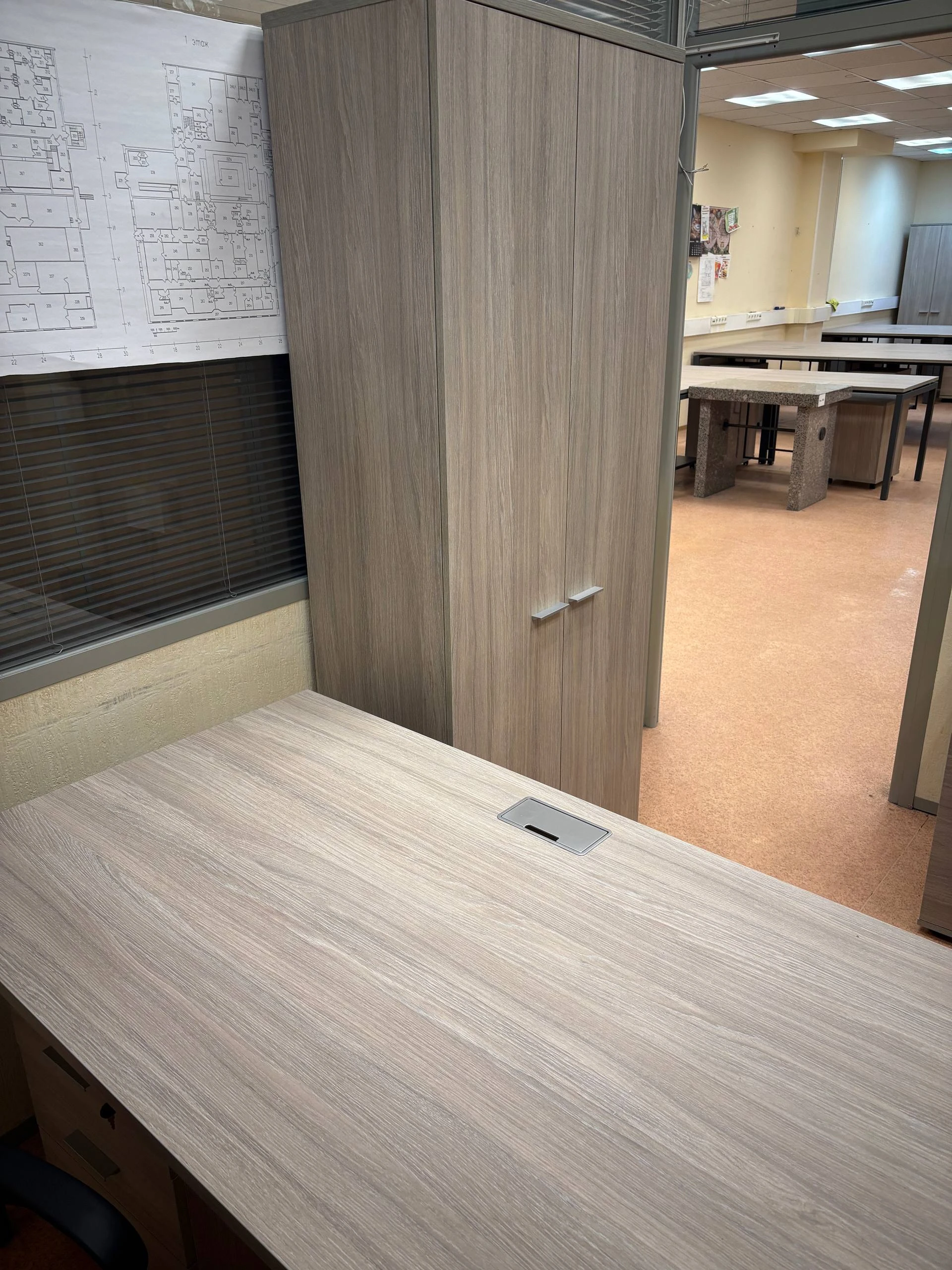 Для обустройства комфортного и функционального пространства на 75 м² под 20 рабочих мест постоянный клиент обратился к нам за полной заменой мебели. Мы предложили несколько вариантов серий, клиент выбрал оптимальную модель, после чего мы бесплатно выполнили расстановку мебели с учётом эргономики и зонирования.